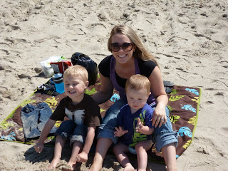 One of the funniest things I've seen in a while was Braxton trying to run in the sand. Because it was uneven ground he had this funny waddle/ walk, sticking his hands out for balance. It resembled his early walking. And notice the fact that he is wearing no pants... because his jeans were SOAKED!